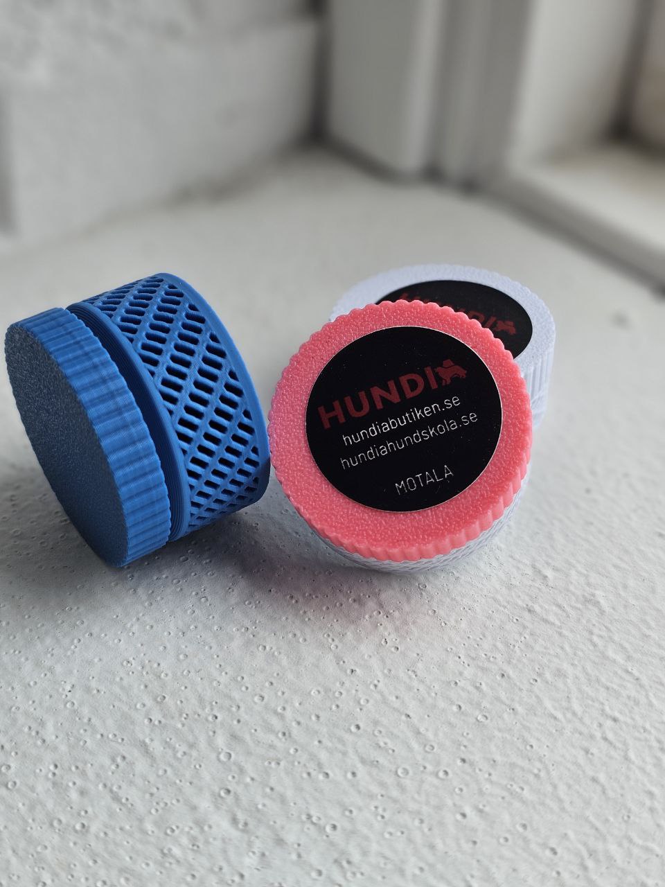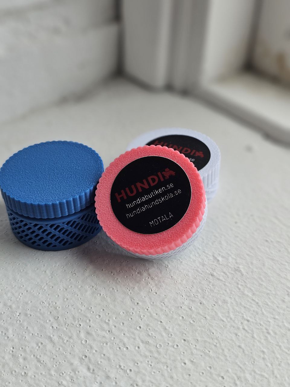 Gömma i PET material med ”nät” på sidorna. Perfekt om du ska lägga den mellan saker då den släpper ut luft på sidorna och du inte riskerar att lägga något över hål så doften stängs inne. Mycket bra som markgömma också.